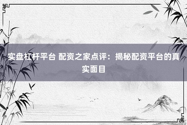 实盘杠杆平台 配资之家点评:揭秘配资平台的真实面目